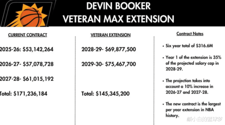 布克这份超级顶薪实在是太大了,这比霍姆格伦拿五年2.5亿还让人震惊。